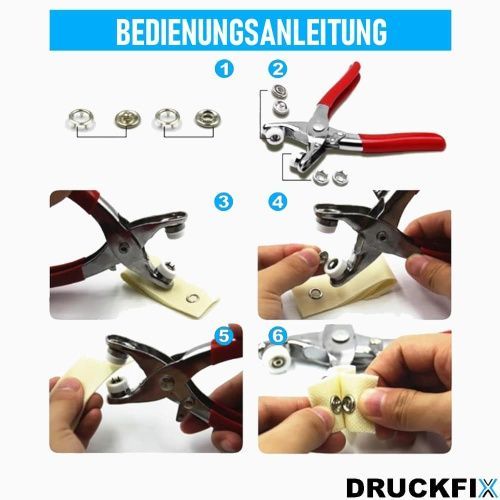 Druckfix Druckknopf Kit Druckknopf-Setter-Werkzeug 100 Drückknöpfen & Zange