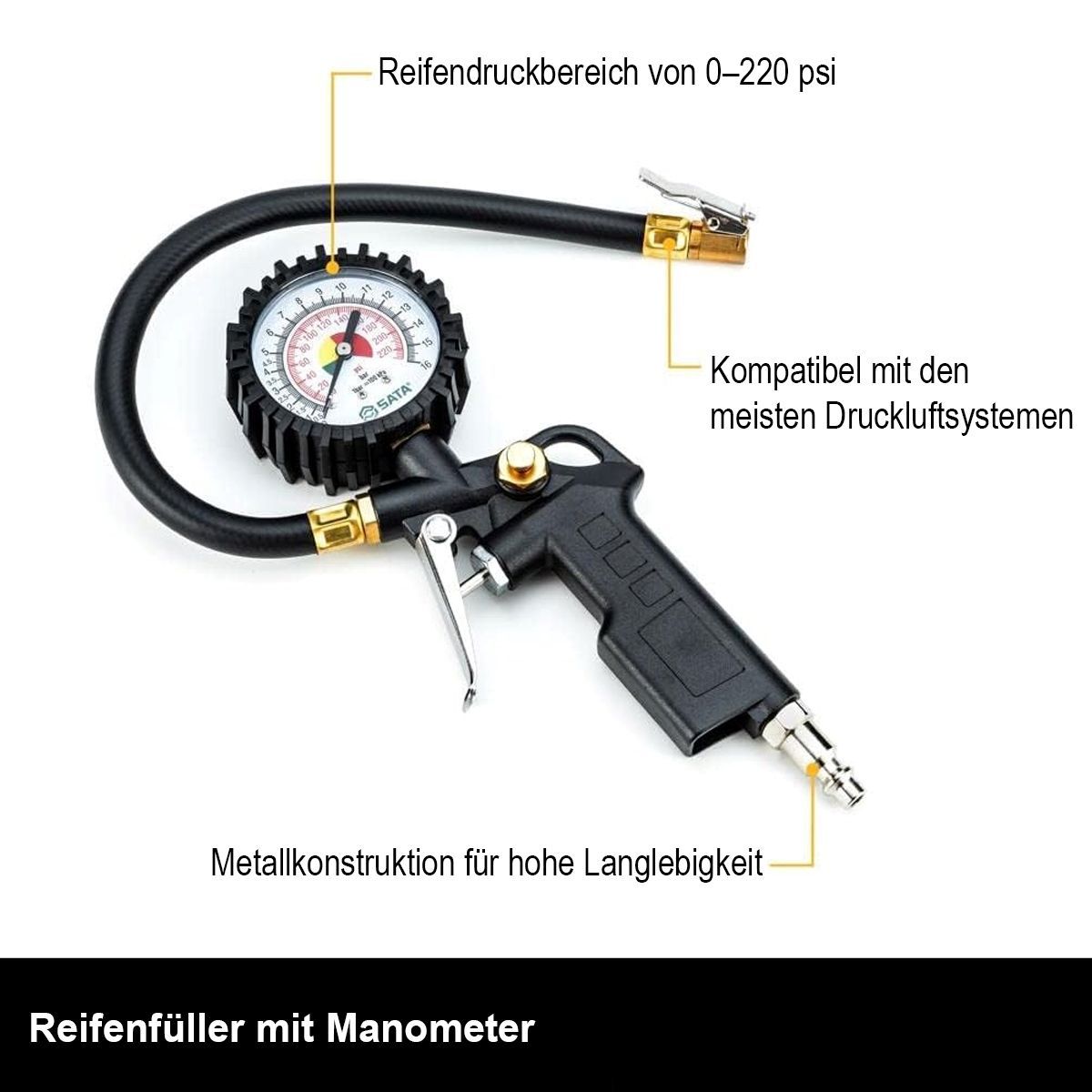 Druckluft Reifenfüller Schlauch Messgerät Manometer Sprüher 16 bar