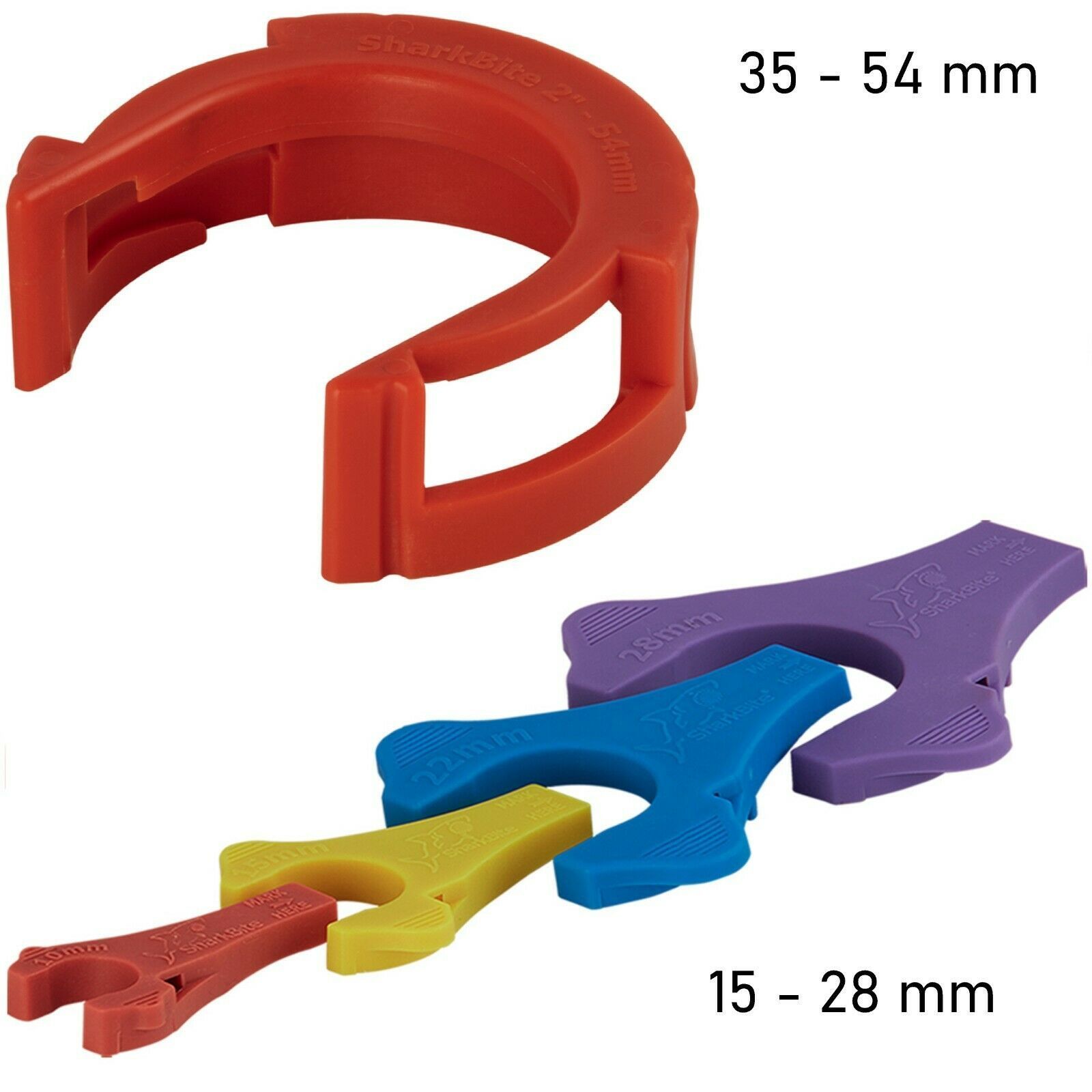 15 mm, 22 mm, 28 mm, 35 mm, 42 mm, 15 x 1/2", 22 x 3/4", 28 x 1", 35 x 1 1/4", 42 x 1 1/2", 54 x 2", 54, 22 x 15, 28 x 22, 35 x 28