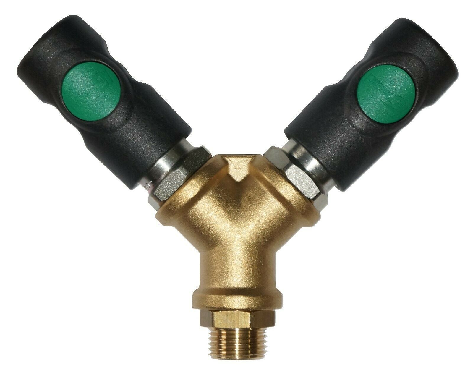 Druckluft-Verteiler Y-Stück 2-fach mit Prevost S1 Sicherheitskupplung 1/2"