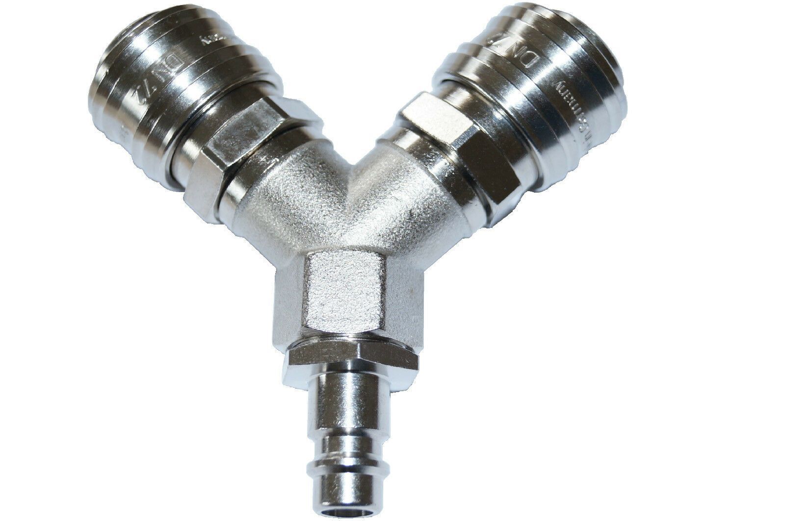 Druckluftverteiler 2-fach Luftweiche mit 2 Kupplungen und Stecknippel msv