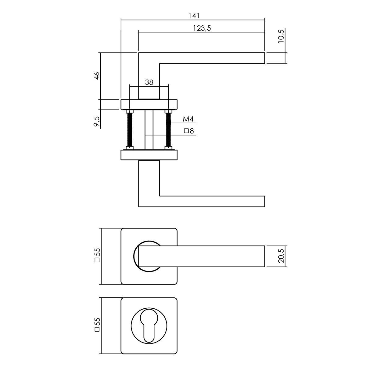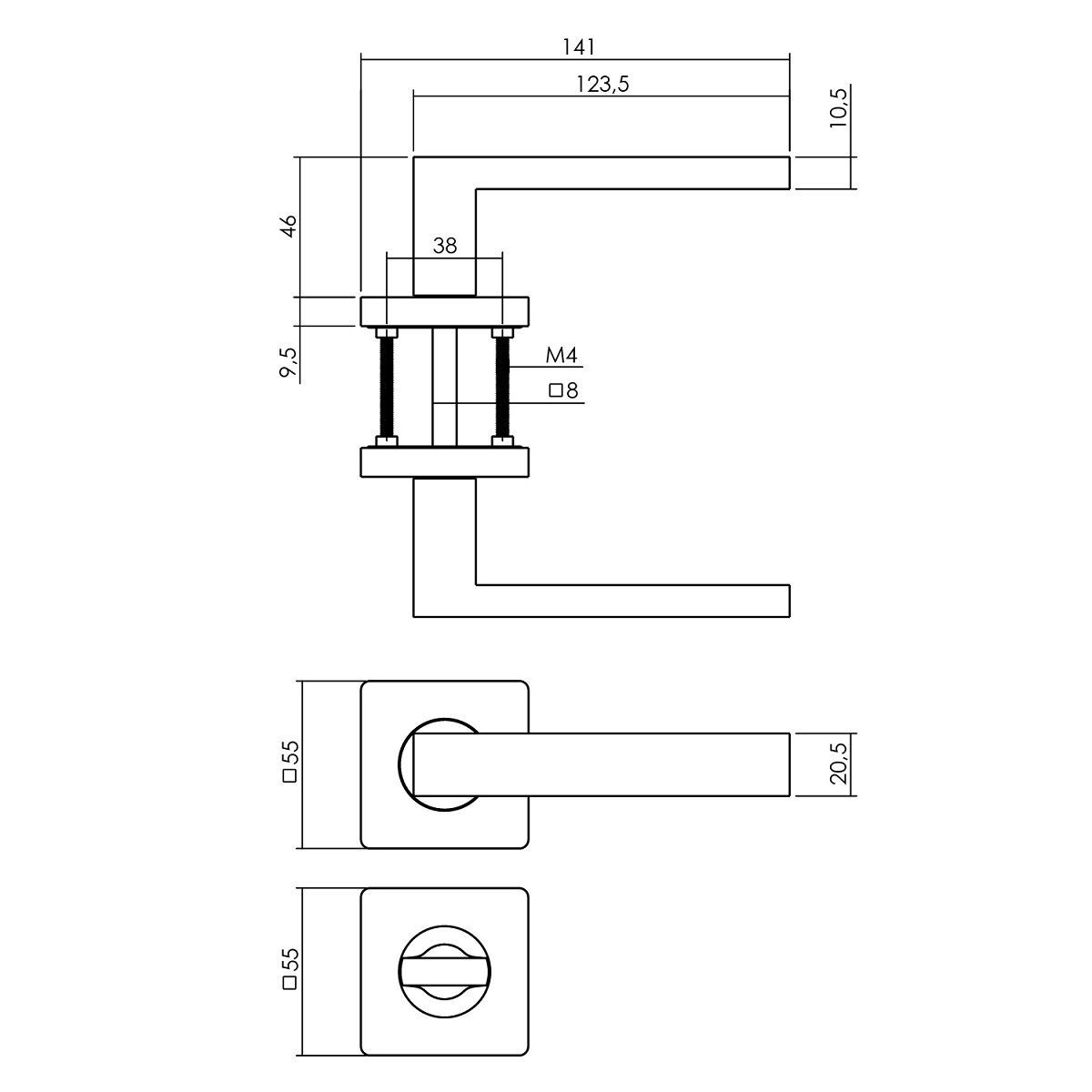Drückergarnitur eckige Rosettengarnitur Türdrücker Schwarz matt Türklinke Zamak