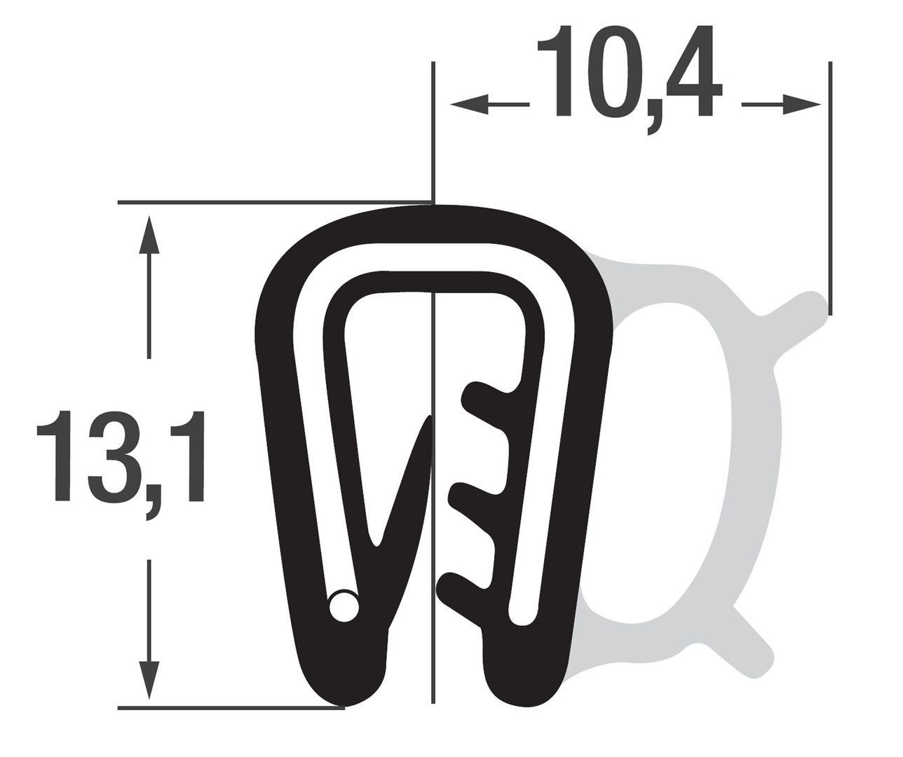 DS10 - EPDM Kantenschutz Dichtungs Profil Gummi Dichtung seitlich - Klemmbereich 2 mm