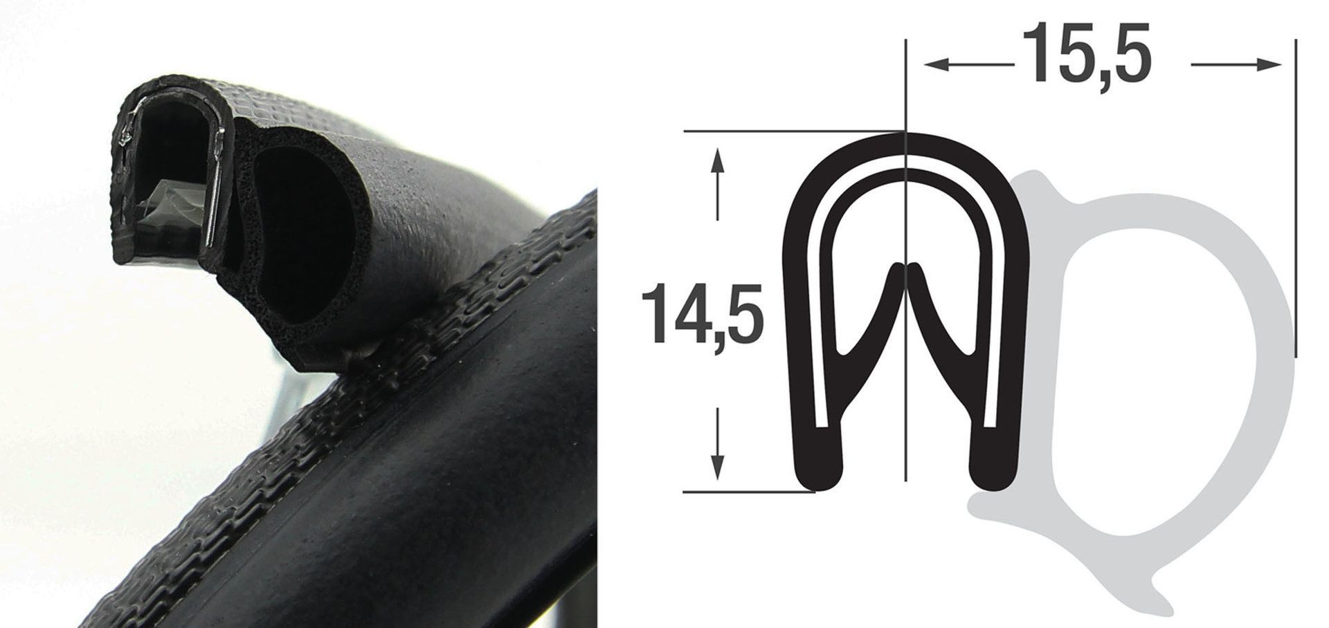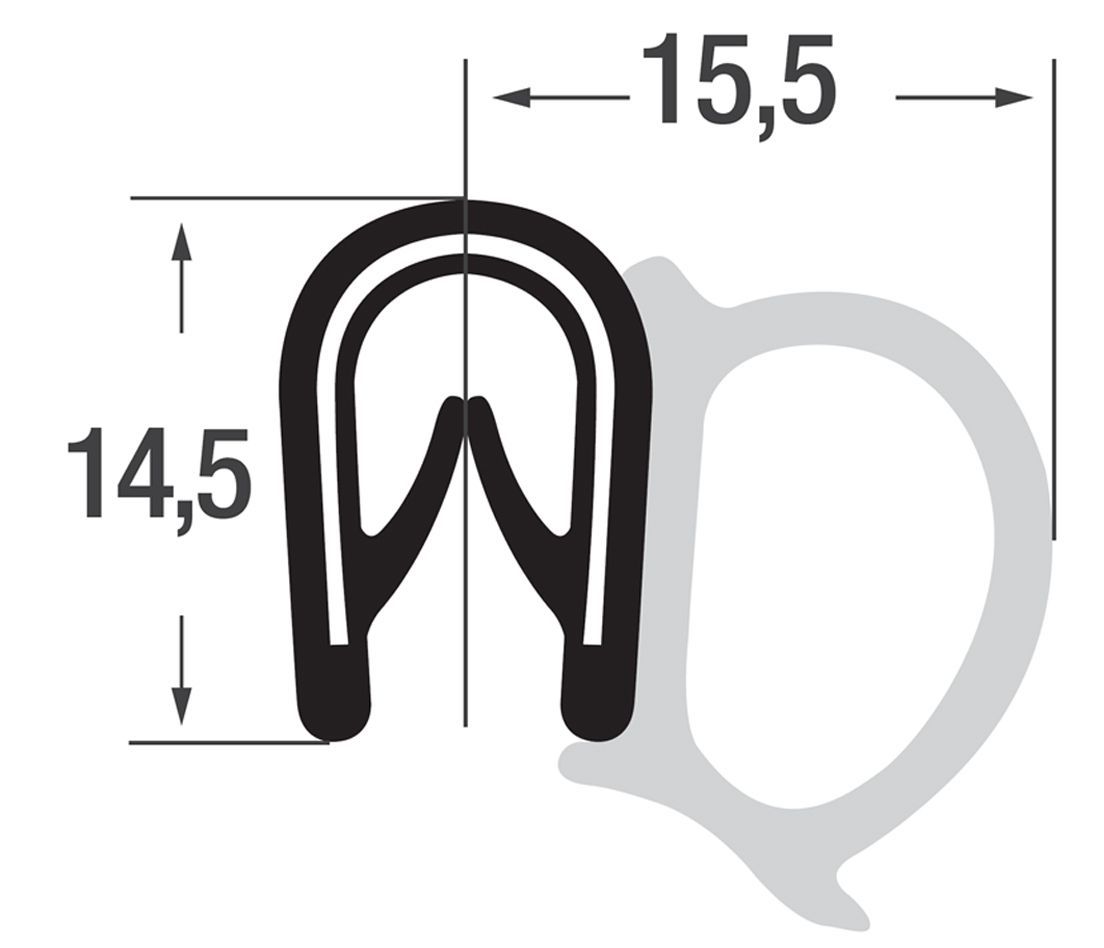 DS12 - PVC/ EPDM Kantenschutz Dichtungs Profil Gummi Dichtung seitlich - Klemmbereich