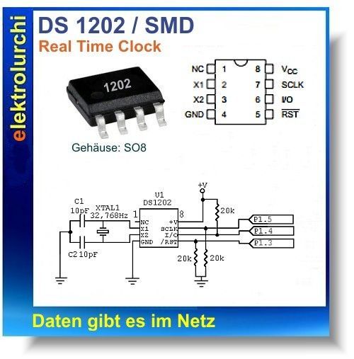 Sie bieten hier auf folgenden Artikel 1 Stück DS1202 - Real Time Clock, Serial Timekeeping, IC SO8 SMD, Dallas Semi. https: www.digchip.com datasheets parts datasheet 000 DS1202-pdf.php