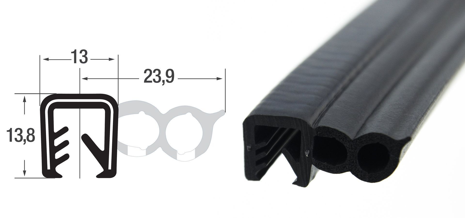 DS20 - EPDM Kantenschutz Dichtungs Profil Gummi Dichtung seitlich - Klemmbereich 5