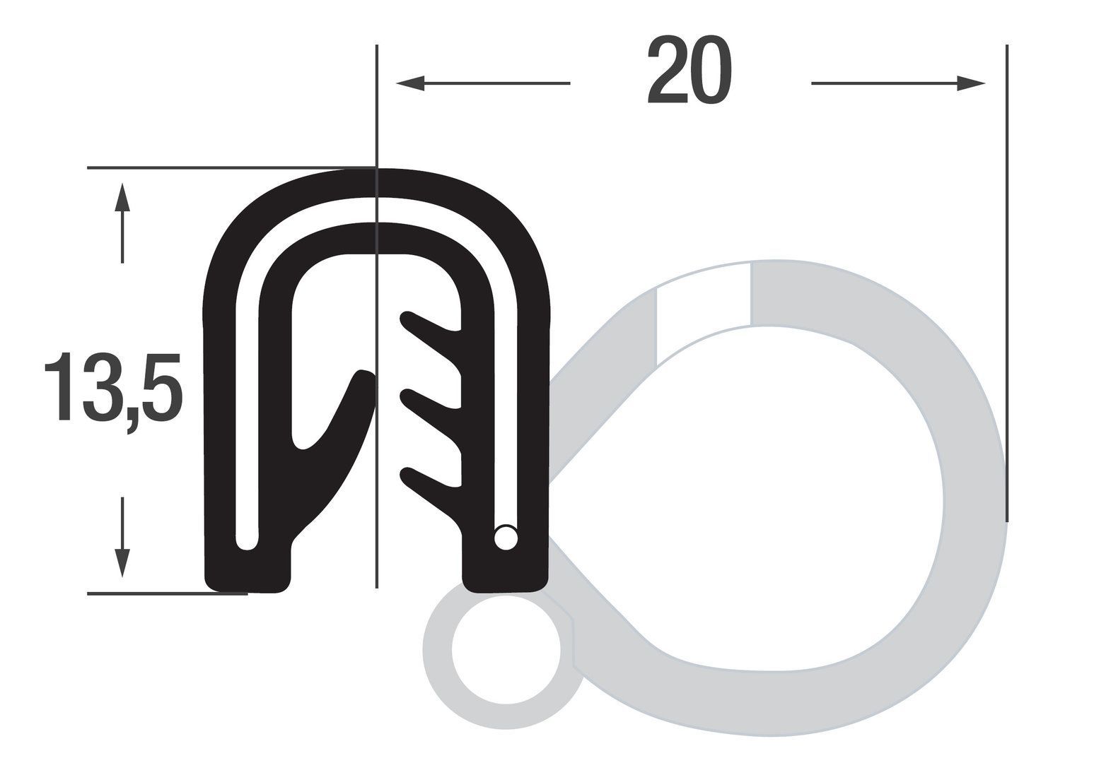DS21 - EPDM Kantenschutz Dichtungs Profil Gummi Dichtung seitlich - Klemmbereich 2 mm