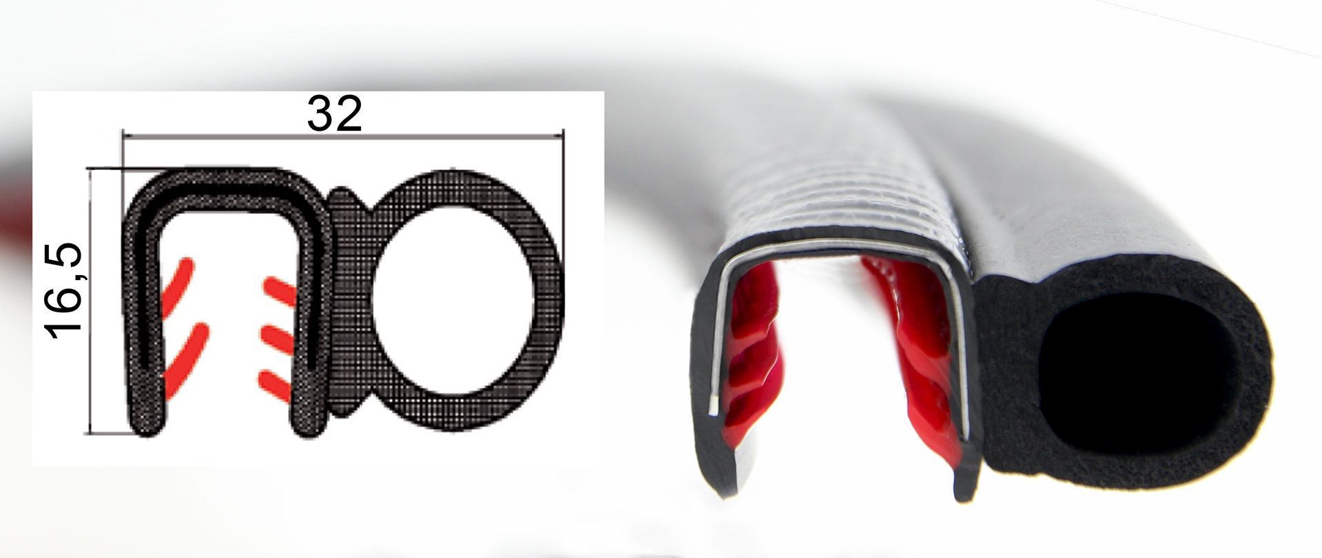 DS33 - PVC/ EPDM Kantenschutz Dichtungs Profil Gummi Dichtung seitlich - Klemmbereic