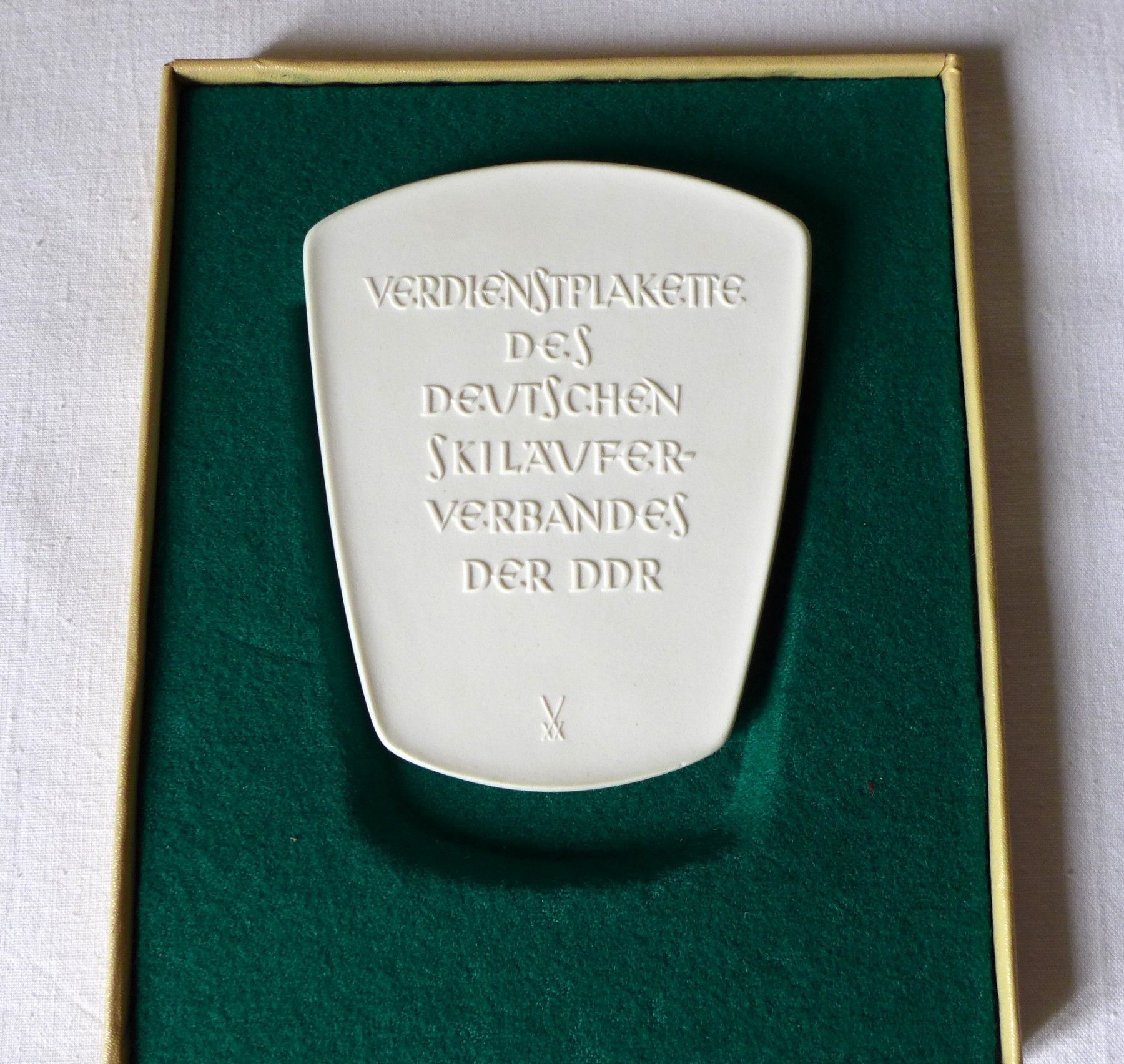 DSLV Verdienstplakette DDR Porzellan Meissen