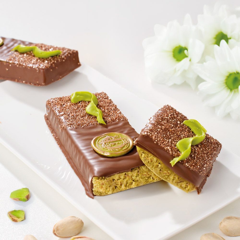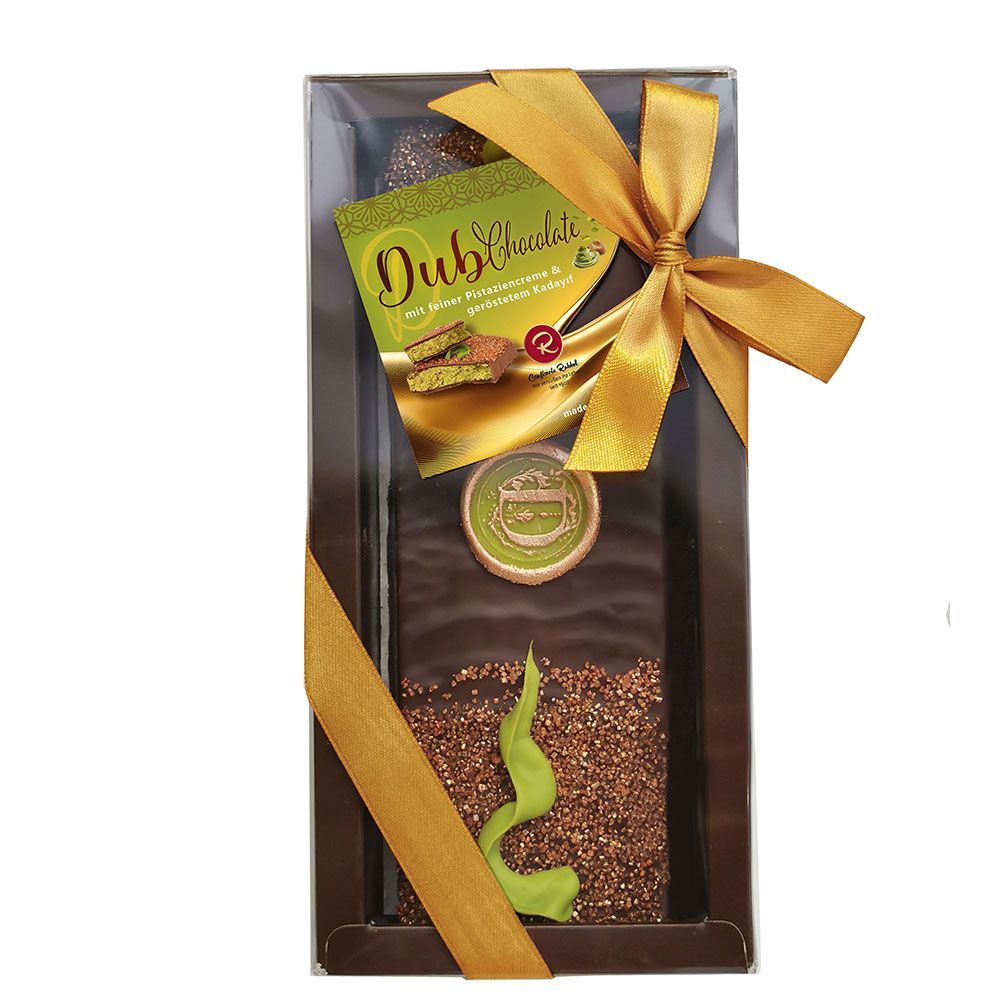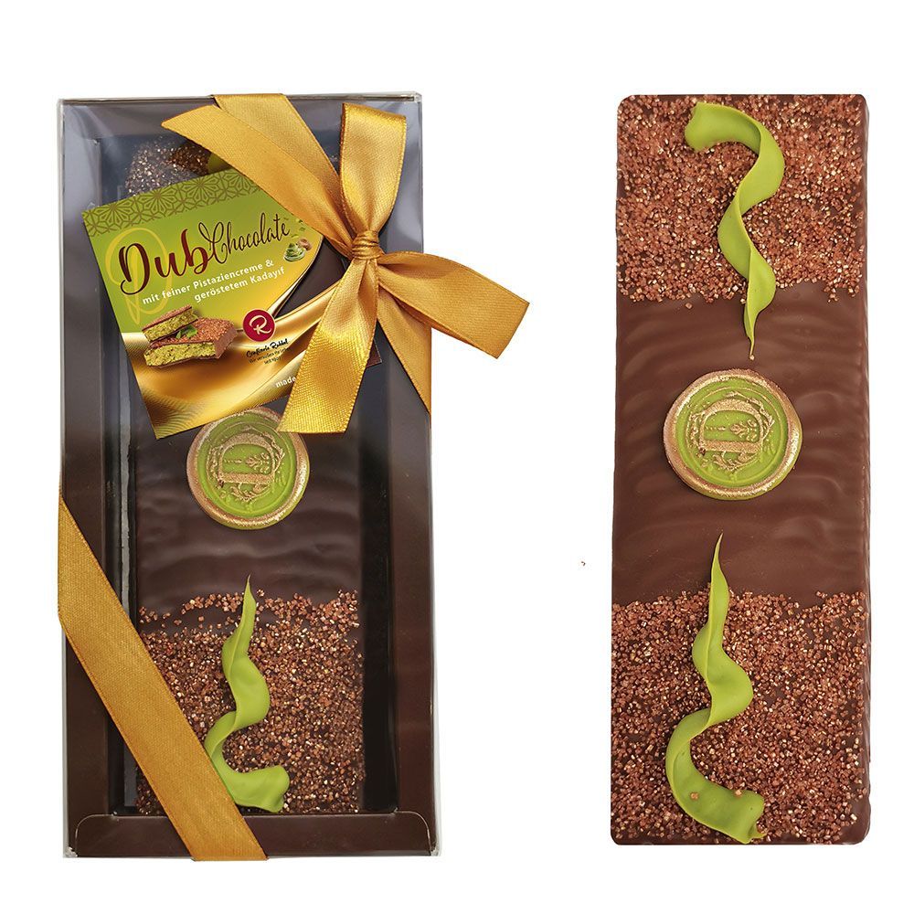 Dub-Vollmilchschokolade mit Pistaziencreme und geröstetem Kadayif