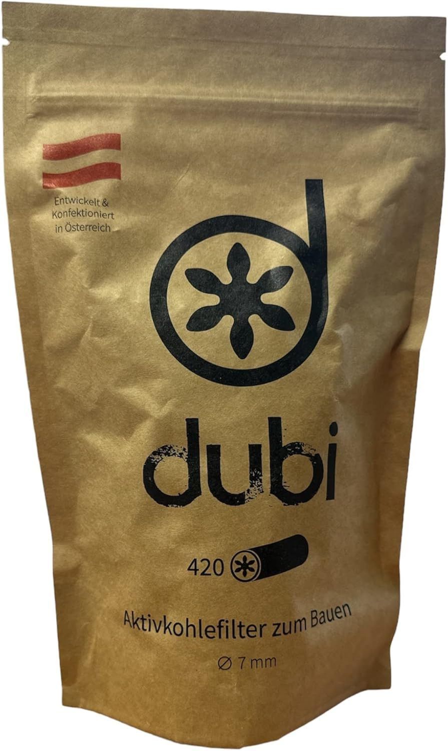 DUBI Aktivkohlefilter - 420 Aktivkohlefilter zum Bauen - 7 mm Slim Filter - unbehandelte Aktivkohle aus Kokosnussschalen - ungebleichtes Filterpapier - Made in Austria