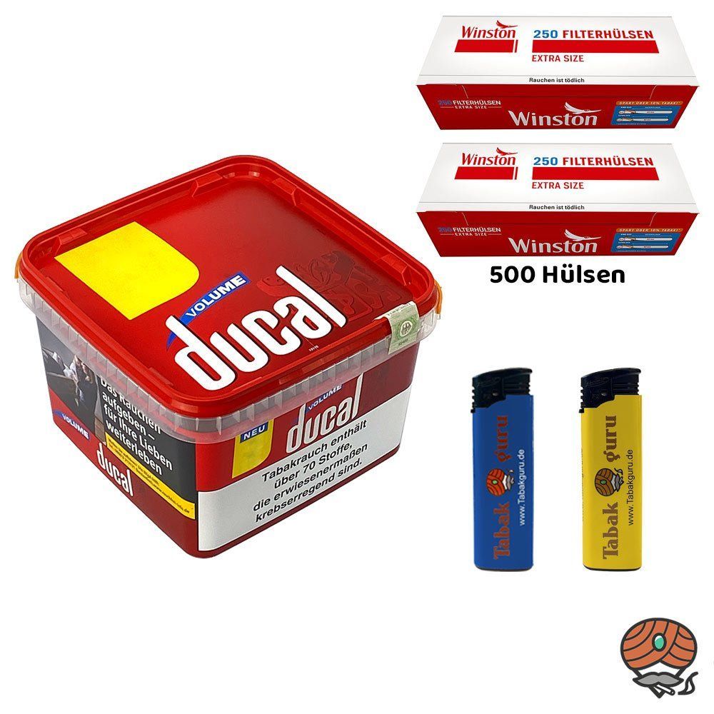 ducal Volume Volumentabak Eimer 155g, 500 Winston Extra Hülsen, Feuerzeuge