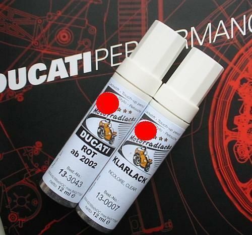 Ducati Lackstift rot 2er Set + Klarlack 2 x 12 ml Lacquer pen Red Touch-up stick