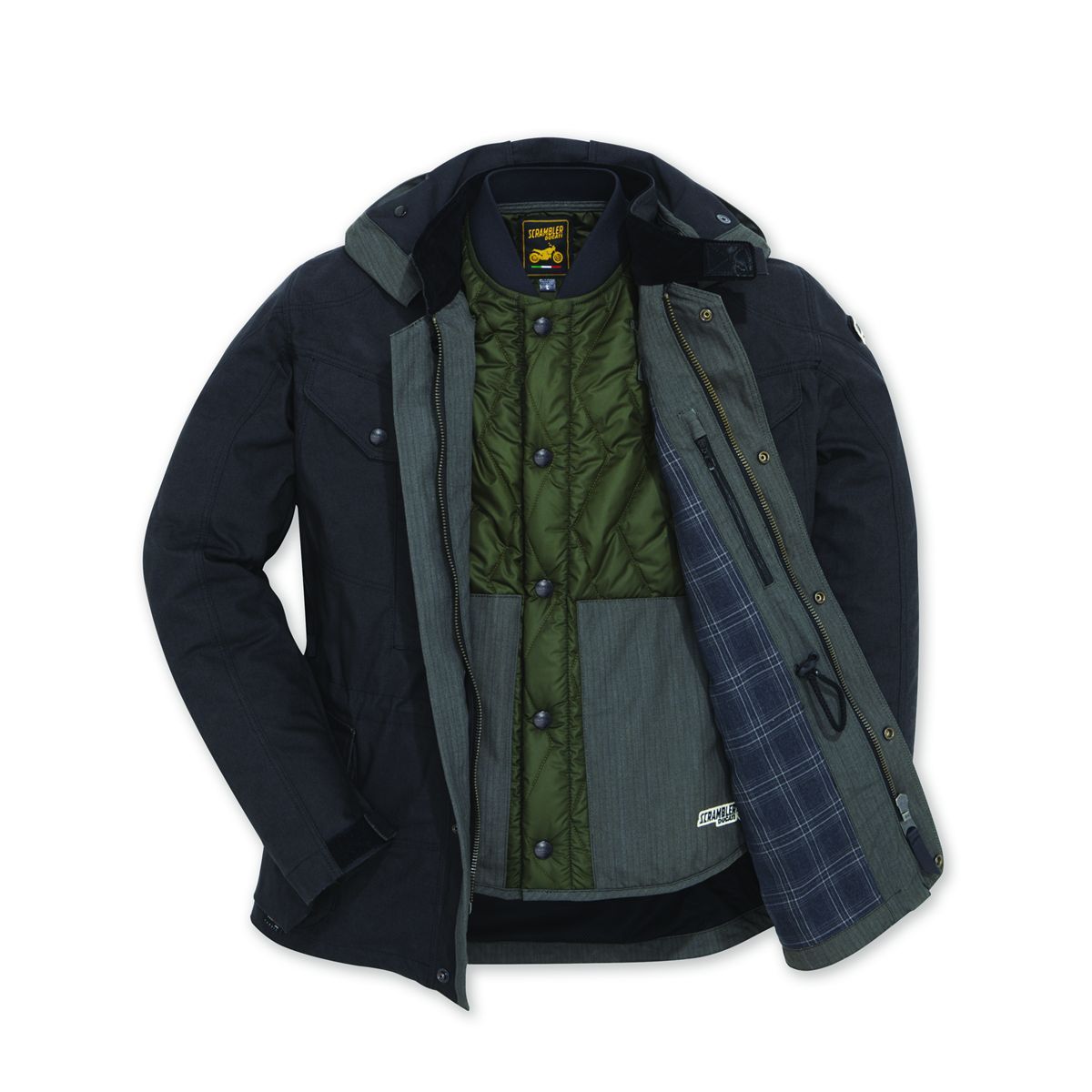 Original DUCATI Scrambler Desert Sled Jacke Die Stoffjacke in perfektem Desert Sled Stil ist bequem, schützend und vielseitig verwendbar. Sie wird aus Cordura® Baumwollgewebe gefertigt und verfügt über eine abnehmbare Kapuze, Weitenregulierungen an Taille, Hals und Bündchen, Lufteinlässe unter d