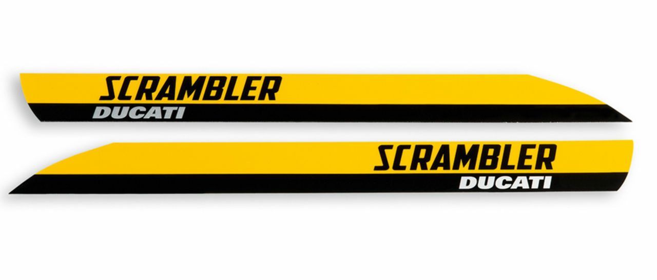 Ducati Scrambler Tankaufkleber Full Throttle - Tankaufkleber mit Scrambler Ducati-Aufschrift - Farben gelb schwarz - eine an der Welt der Flat-Tracks inspirierte Personalisierung Art. - Nr.: 97480111 passend für: - Ducati Scrambler ICON - Ducati Scrambler CLASSIC - Ducati Scrambler URBAN ENDURO - Du