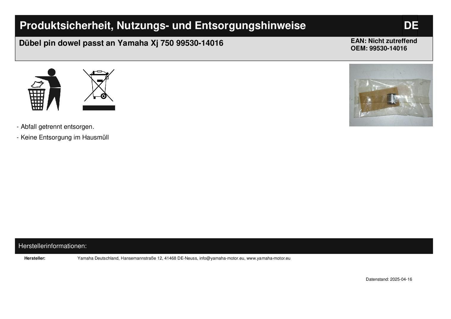 Dübel pin dowel passt an Yamaha Xj 750 99530-14016