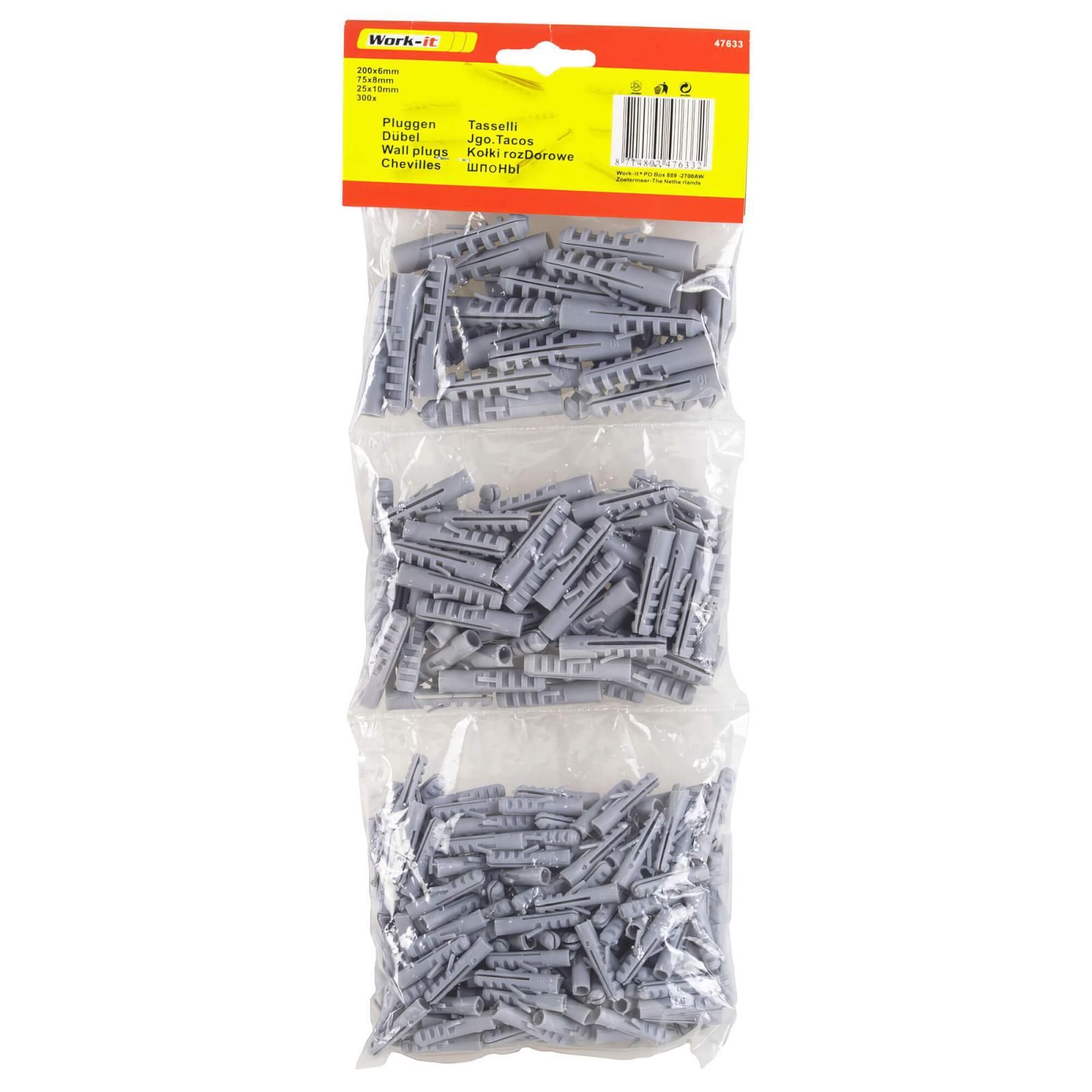 Dübelsortiment 300 teilig Dübel Set 6mm 8mm 10mm Universaldübel Work-it