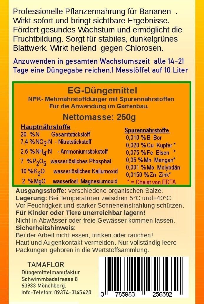 Dünger für Bananen, Pflanzendünger Bananendünger Musa für 250 l