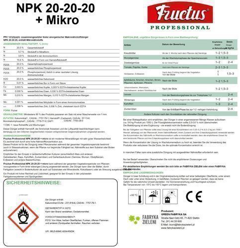 Dünger Für Gemüse Obst Blumen Pflanzen Universal Volldünger NPK 20-20-20 2,5kg