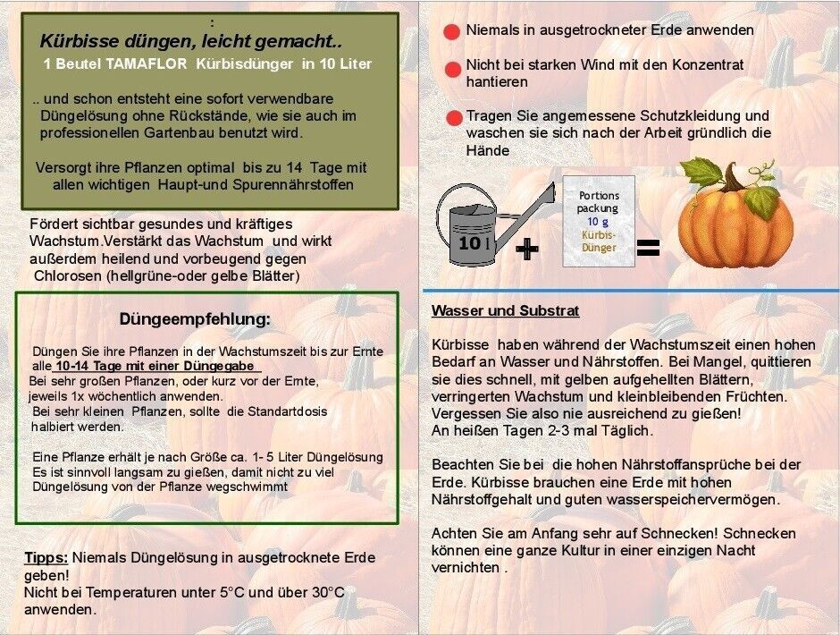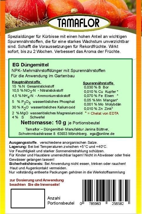Dünger für Kürbisse 10 Portionsbeutel für 100 Liter Wasser