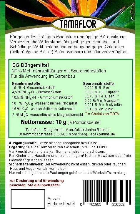 Dünger für Strelitzien und Helikonien , Pflanzendünger Portionsbeutel für 50 l