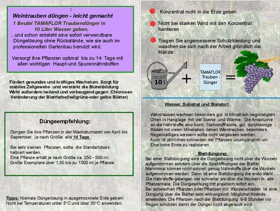 Düngerkonzentrat Wein, Weinreben Dünger Portionsbeutel für 100 Liter