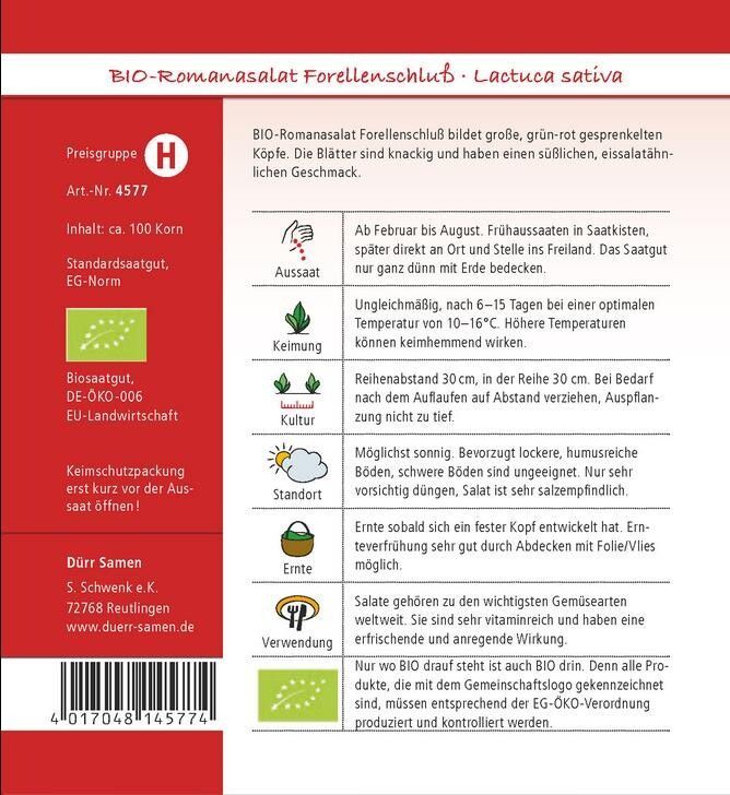 Dürr BIO Romanasalat Forellenschluß, feste, aufrechte Köpfe
