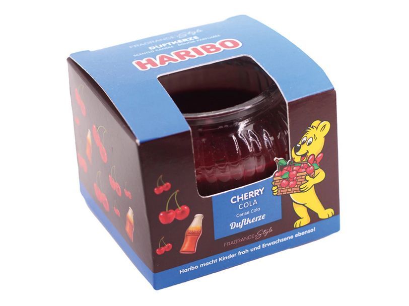 Duftkerze Haribo Cherry Cola 85g – Der Duft von Süßigkeiten in deiner Wohnung! Produktbeschreibung: Tauche ein in den einzigartigen Duft der Haribo Cherry Cola Duftkerze ! Mit einem 85g Glas voller fruchtigem Cherry-Cola-Aroma bringt diese Kerze eine verspielte und angenehme Atmosphäre in jede