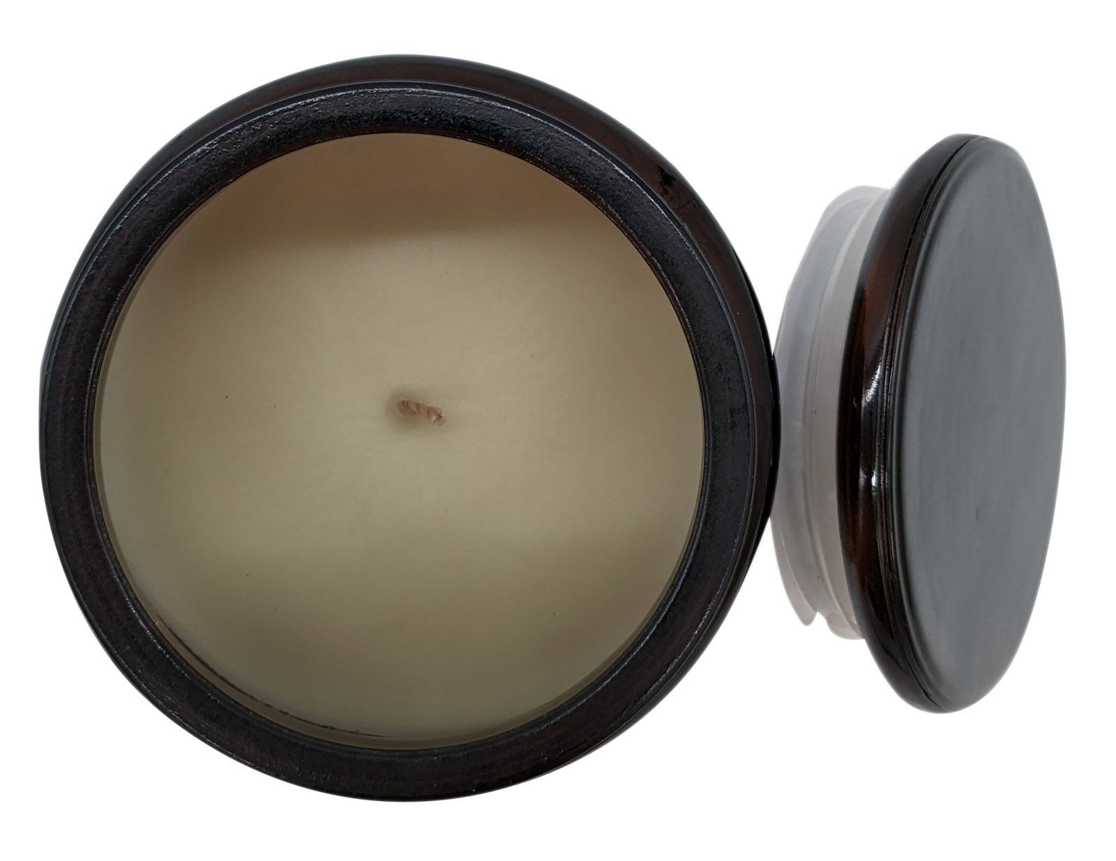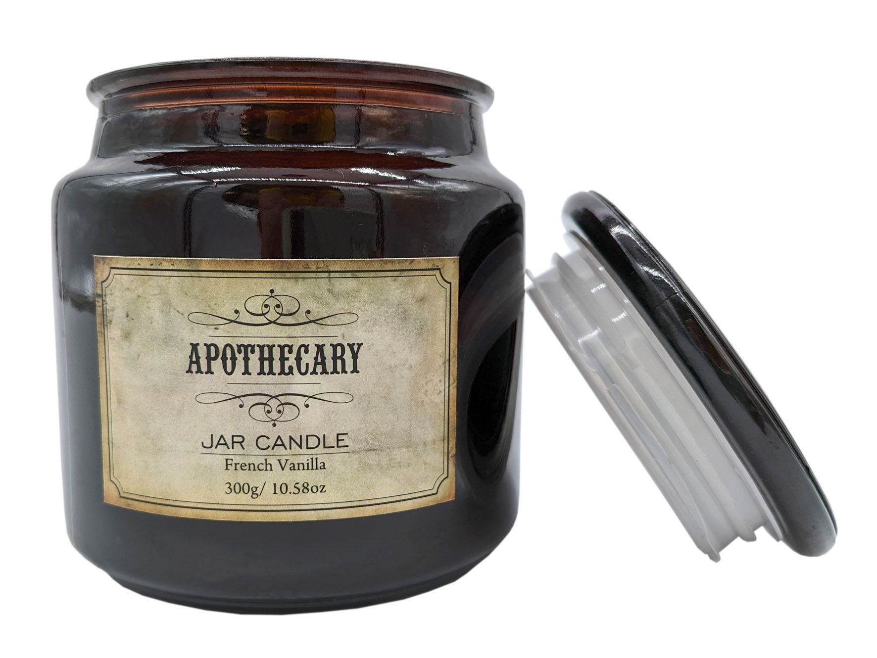 Parfümierte Kerze im braunen Apotheker Glas ca. 10 cm mit luftdicht verschließbarem Deckel