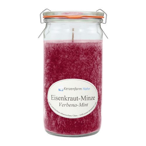 Kerzenfarm Hahn Duftkerze im XL-Weckglas®, 100% pflanzliches Stearin, Eisenkraut-Minze, Kerzenfa