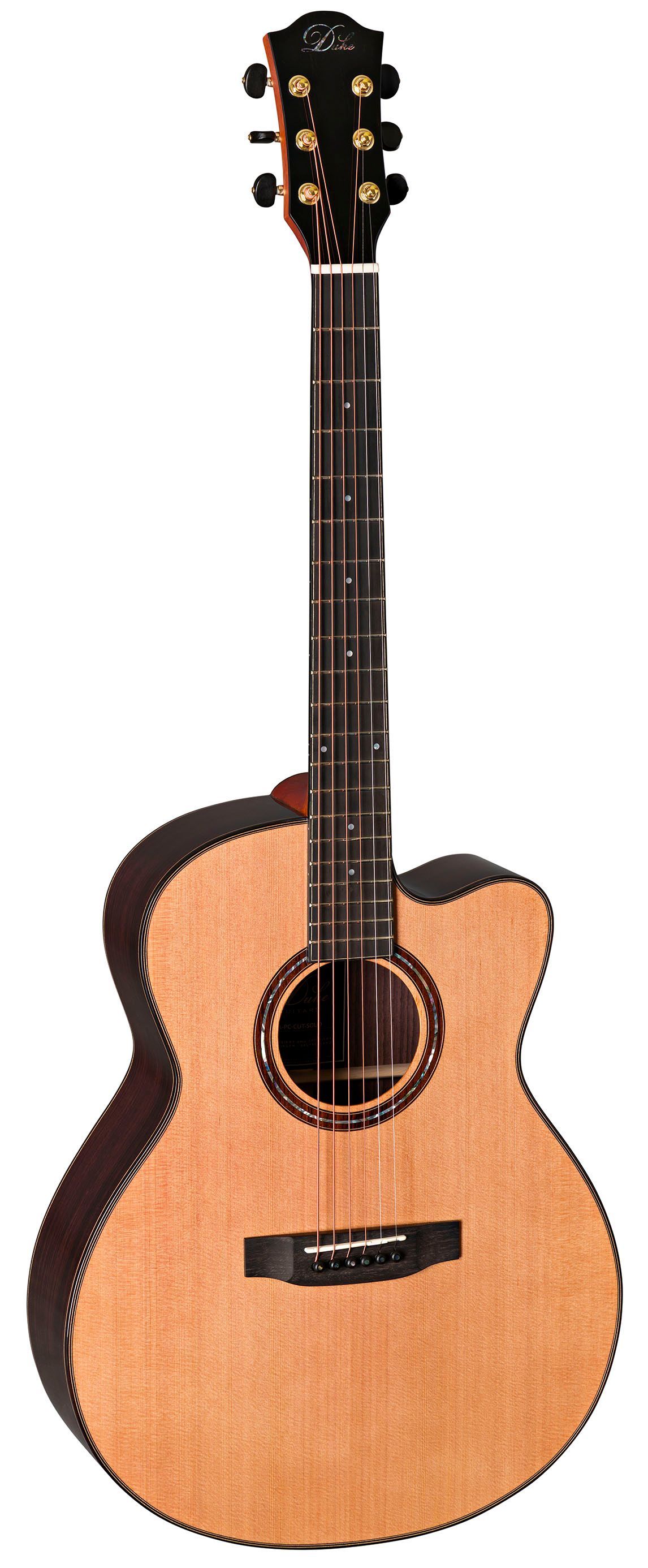 Duke GA-PC-Cut-Solid - Grand Auditorium Ausgestattet mit einer massiven Decke aus Kanadischer Zeder und einem massiven Korpus aus ostindischem Palisander liefert die formschöne Grand Auditorium nicht nur ausgewogene, laute Klänge mit tiefen Bässen und brillianten Obertönen. Im Vergleich zu den teilm