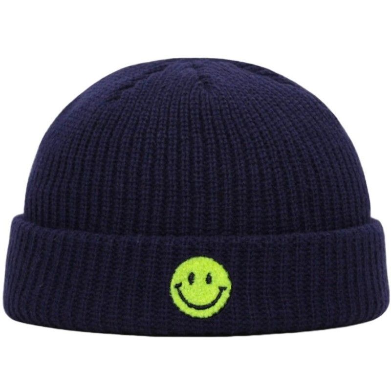 Dunkelblaue SMILEY Docker Beanie Mütze - Mützen Beanies Hüte Caps Snapbacks Hats
