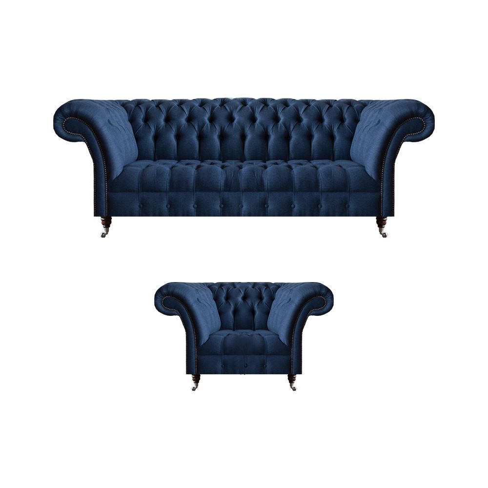Dunkelblaue Wohnzimmer 3-Sitzer Couch Designer Lehnsessel Edler 2tlg Set