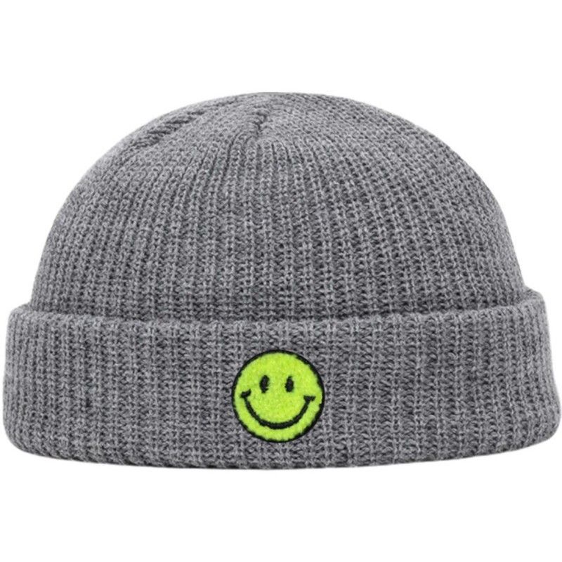 Dunkelgraue SMILEY Docker Beanie Mütze - Mützen Beanies Hüte Caps Snapbacks Hats