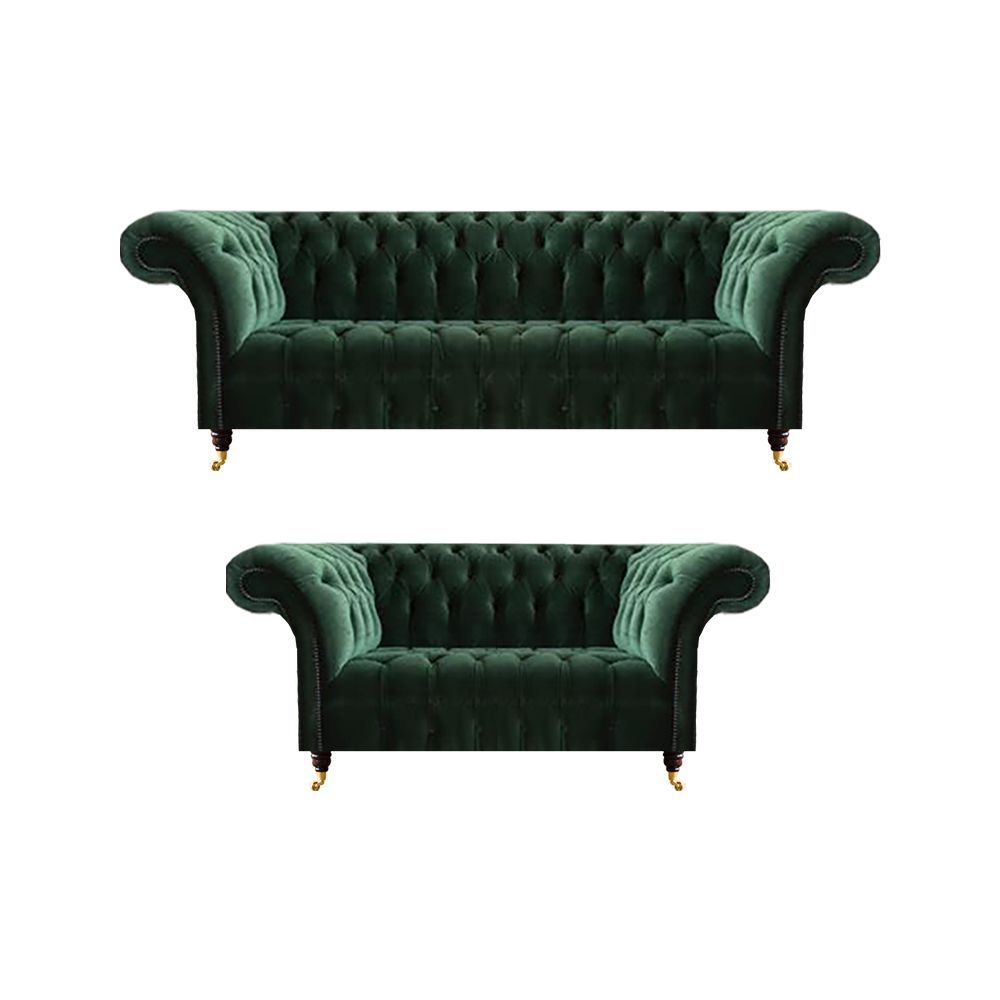 Dunkelgrüne Chesterfield Sofas Moderner Dreisitzer Polster Couch 2tlg