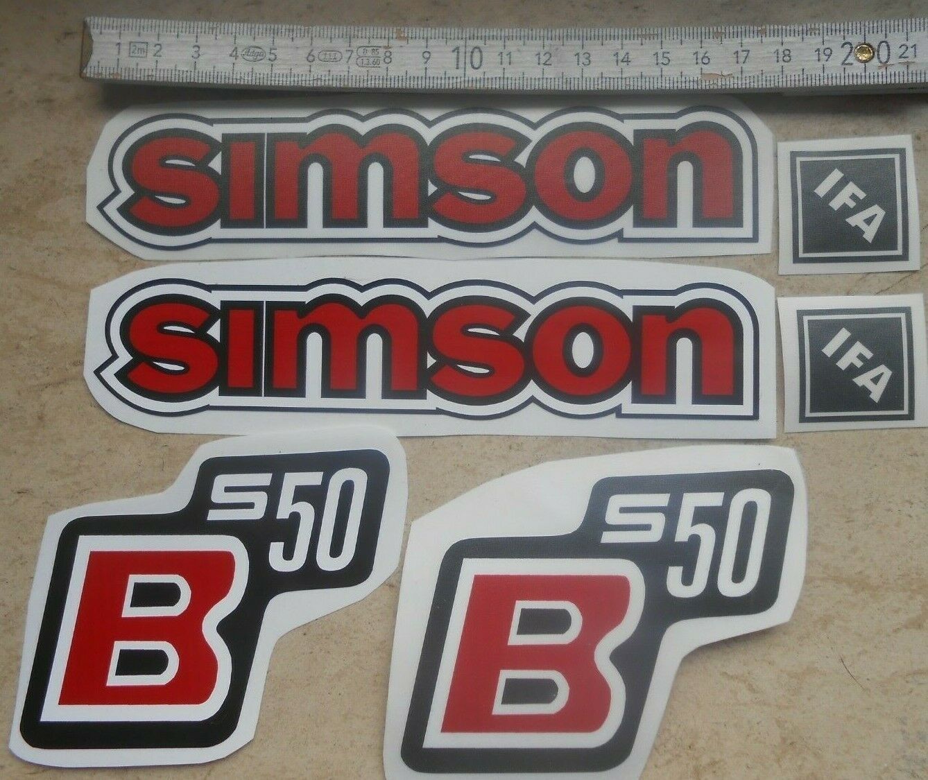 Dunkelrot-Schwarz-Weiß 6 Aufkleber unter Übertragungsfolie zum leichten anbringen 2x SIMSON Schriftzug klein S50 ca.17,3 x 3,5 cm bitte angeben welche Farbvariante verschickt werden soll 2x S50 B 2xIFA Logo ca.3x3 cm transparenter HG