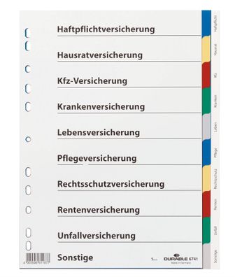 • Durable Ordnerregister Versicherungen 10tlg mit Aufdruck u Index