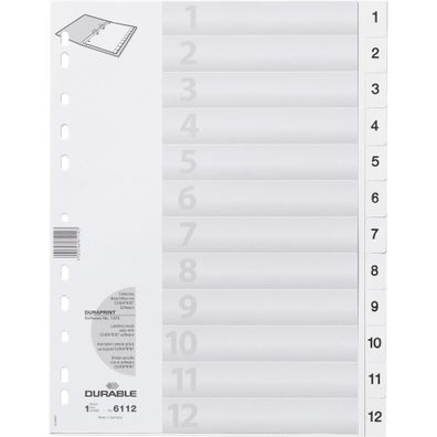 • Durable Ordnerregister 1-12 für A4 ws geprägte Taben mit Deckblatt