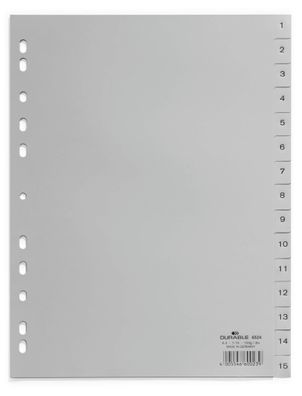 • Durable Ordnerregister für A4 15tlg gr umschweißte Taben u Schild