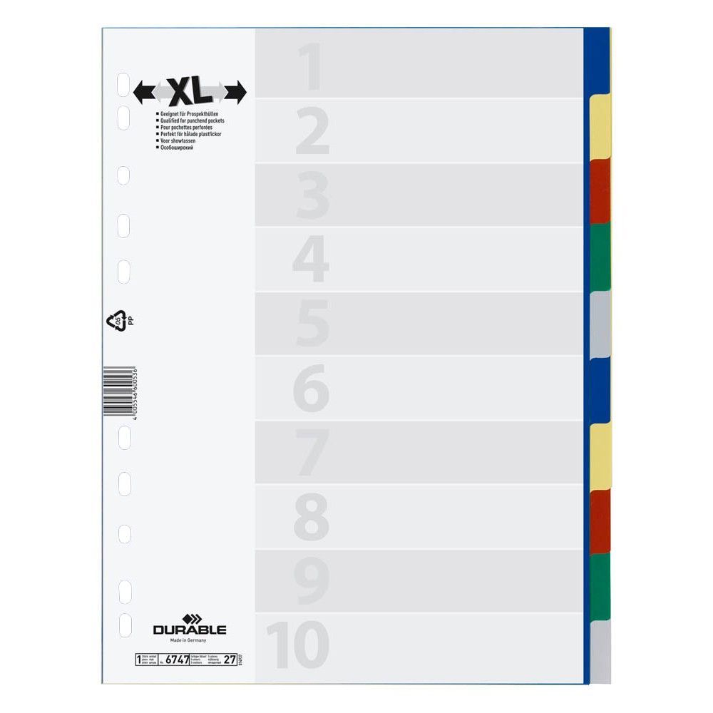 DURABLE Durable 6747-27 Ordnerregister DIN A4 Vollformat Überbreite blanko farbsortiert 10-te