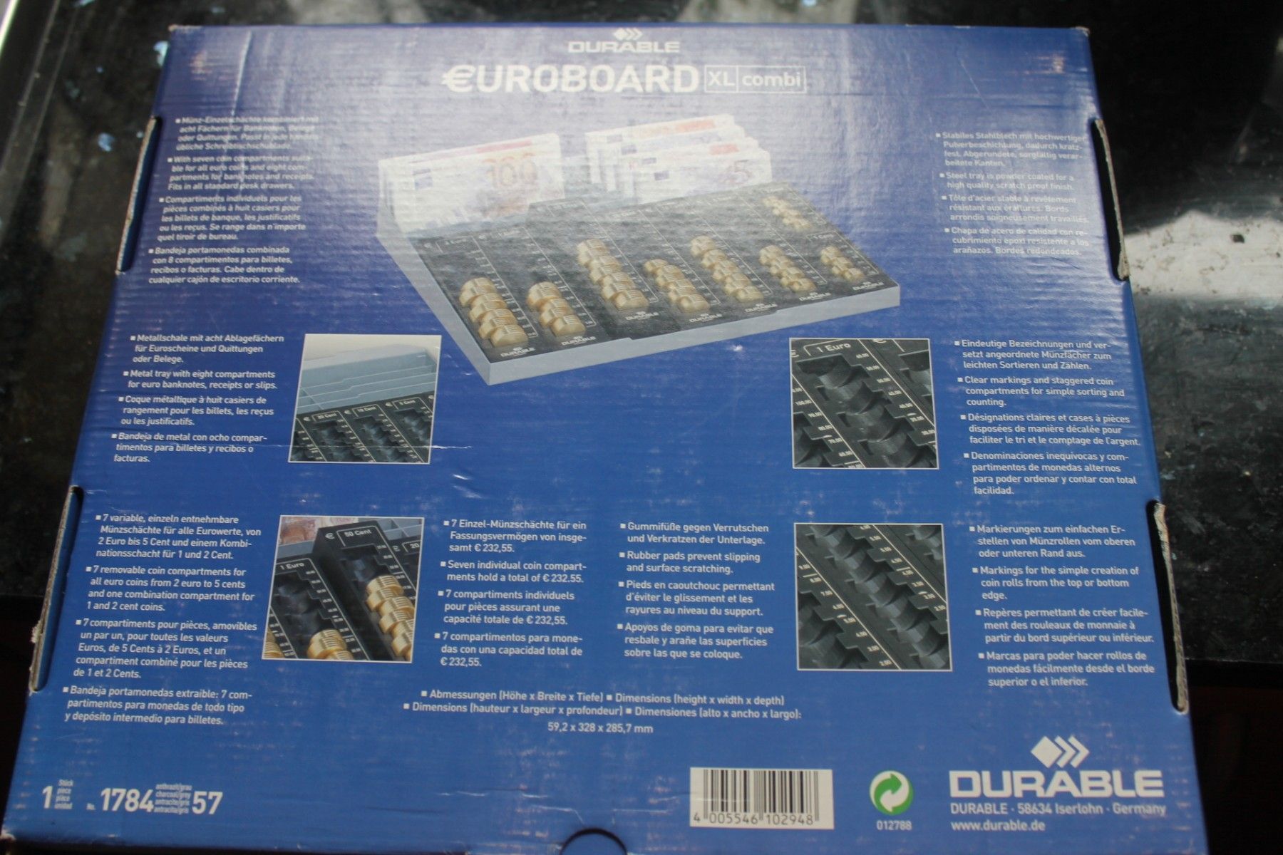 Durable Durable Geldzählbrett; Euroboard XL - Zählbrett für Euromünzen aus Metall