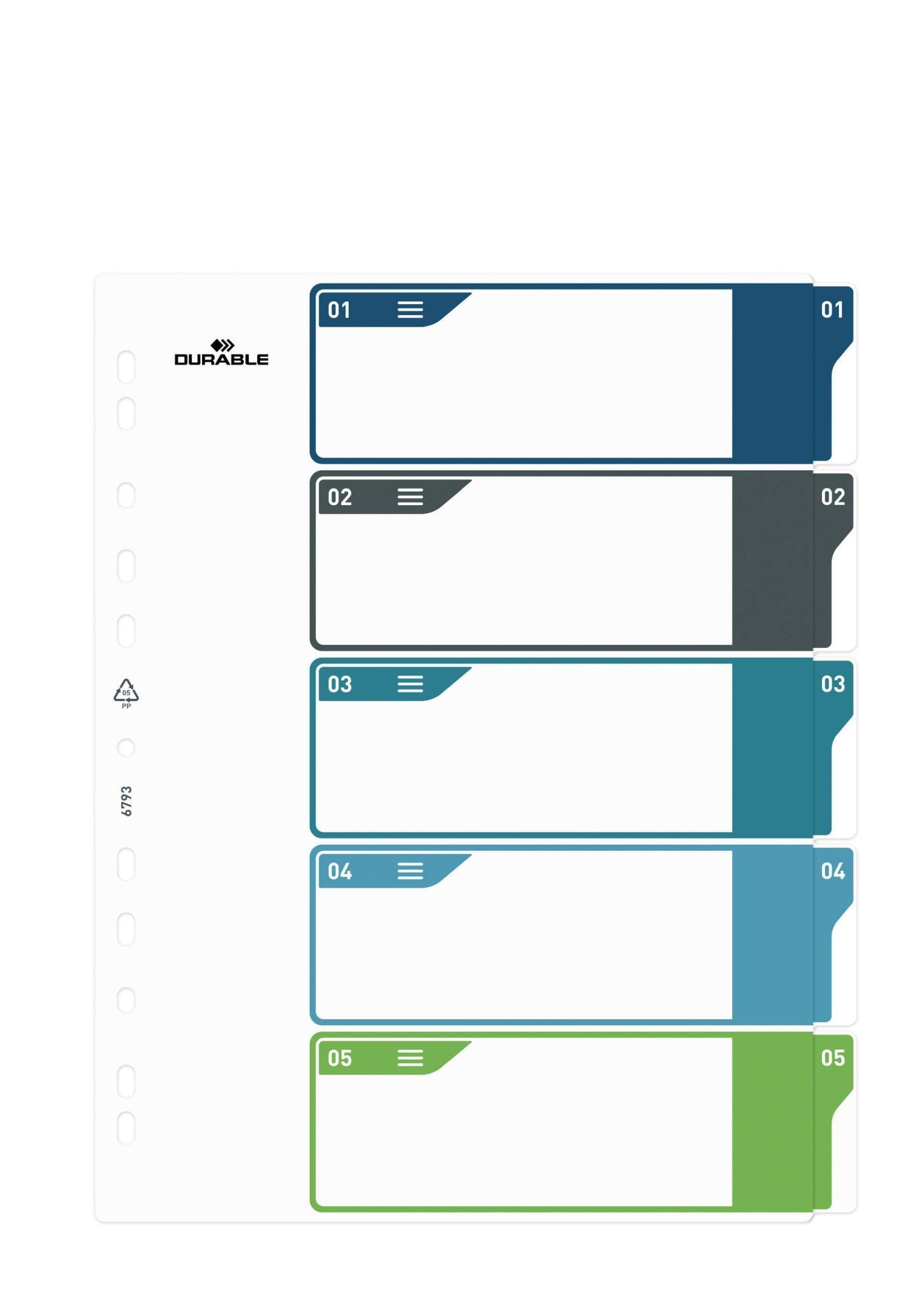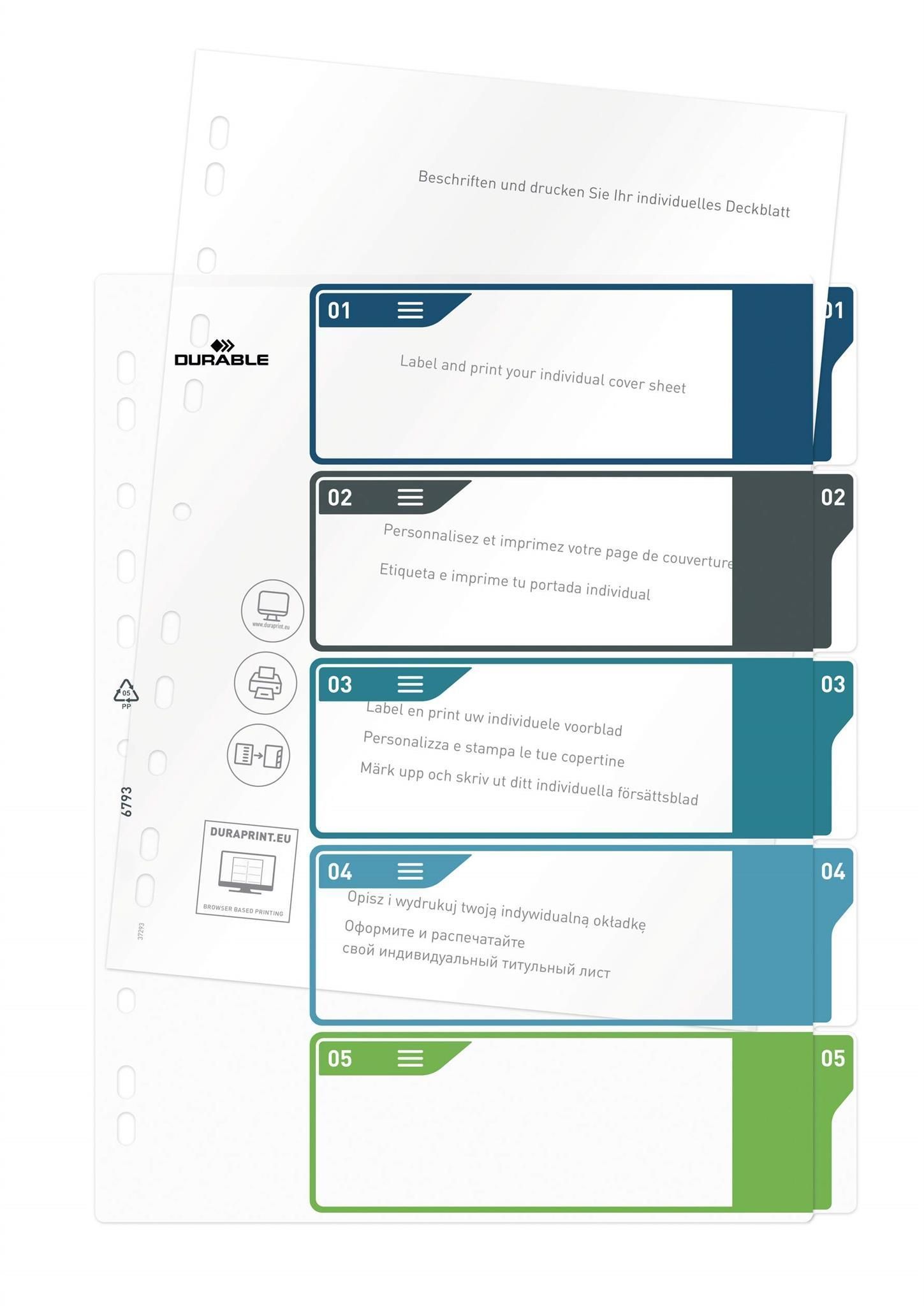 Durable Durable Ordnerregister A4 hoch 5tlg PP farbige beschriftbare Taben