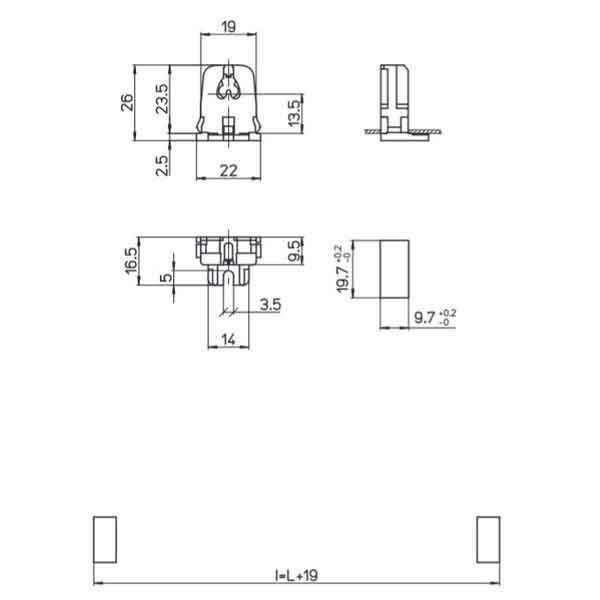 Durchsteckfassung, Halterung Leuchtstoffröhren, für T5 - 16mm Lampe, G5, weiss