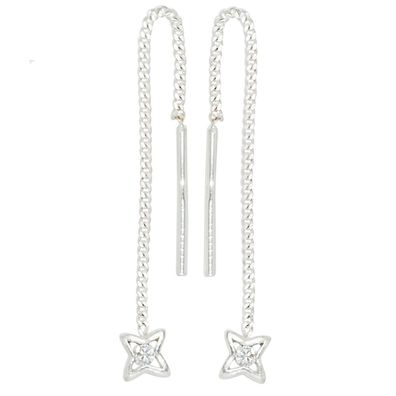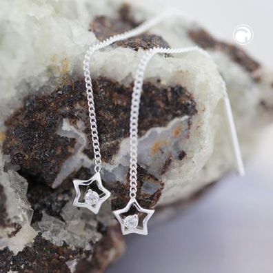 • Durchzieh-Ohrhänger Stern 925 Sterling Silber rhodiniert 2 Zirkonia