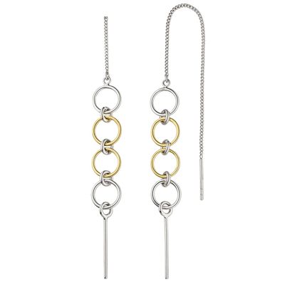 • Durchzieh-Ohrhänger lang 925 Sterling Silber bicolor Ohrringe zum Durchziehen