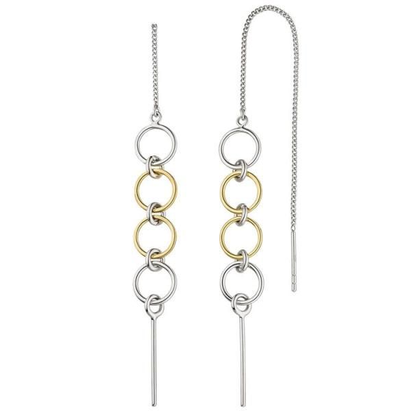 • Durchzieh-Ohrhänger lang 925 Sterling Silber bicolor Ohrringe zum Durchziehen
