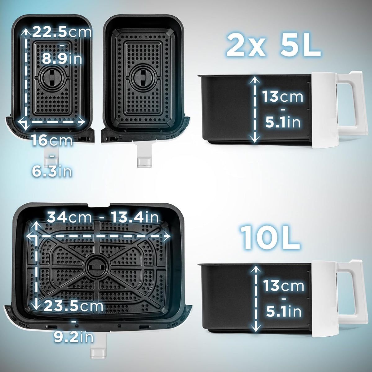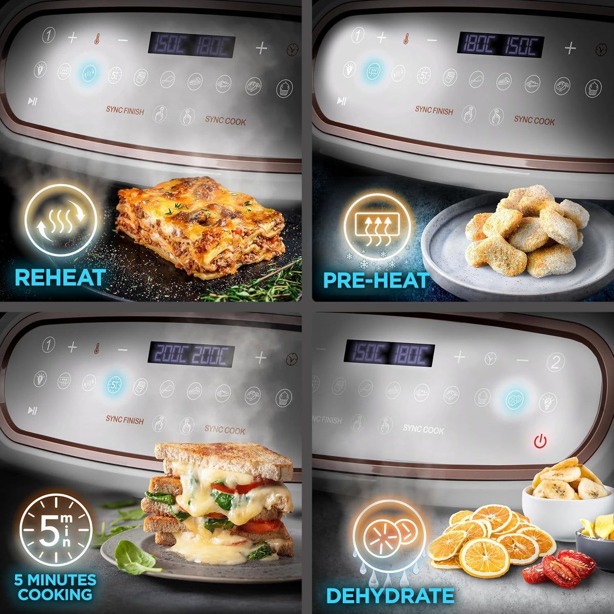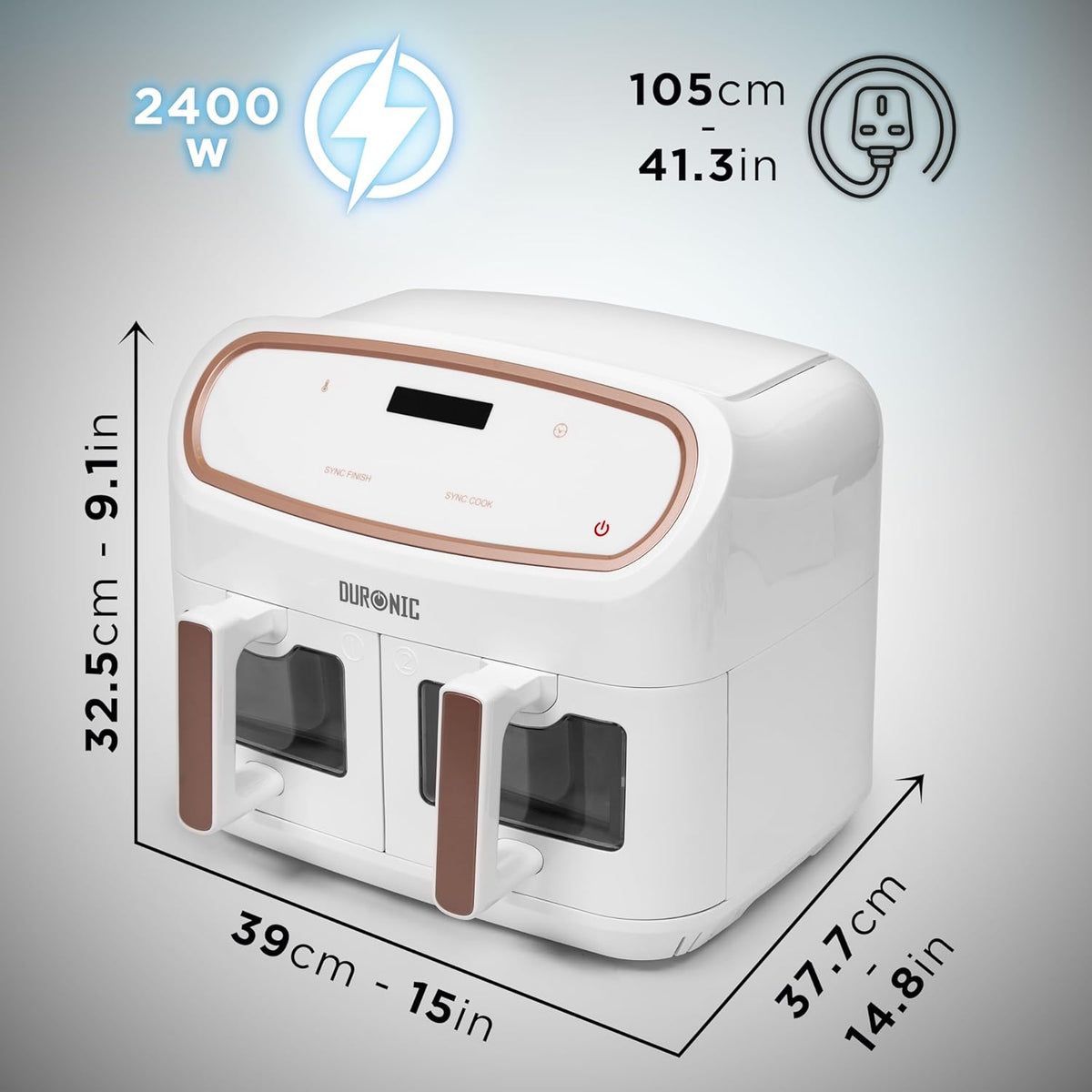 Duronic AF34 WE Heißluftfritteuse 10L Fritteuse Dual Zone Airfryer Sync Cook