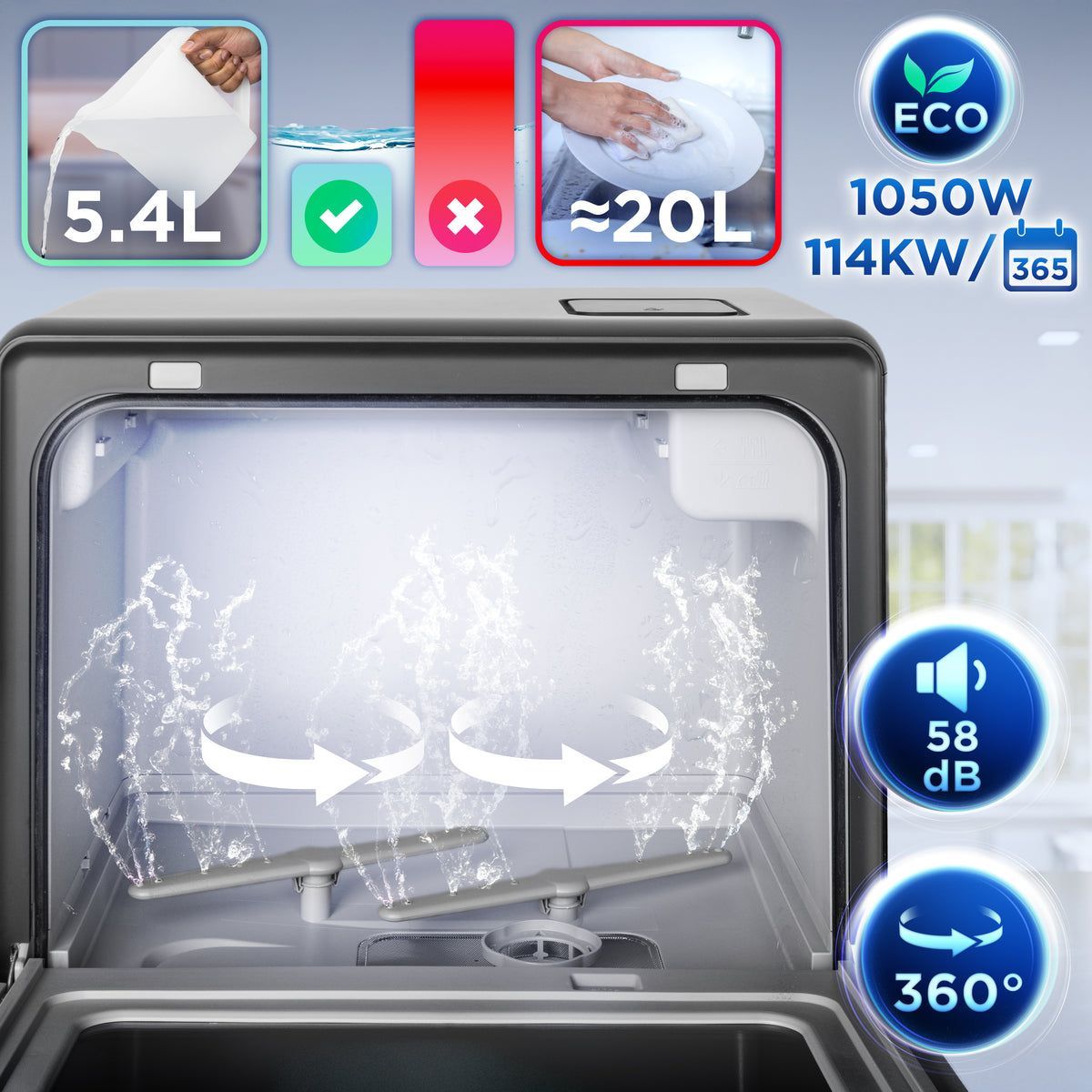 Duronic DW10 BK Tischgeschirrspüler Mini Geschirrspüler 6 Gedecke 6 Programme