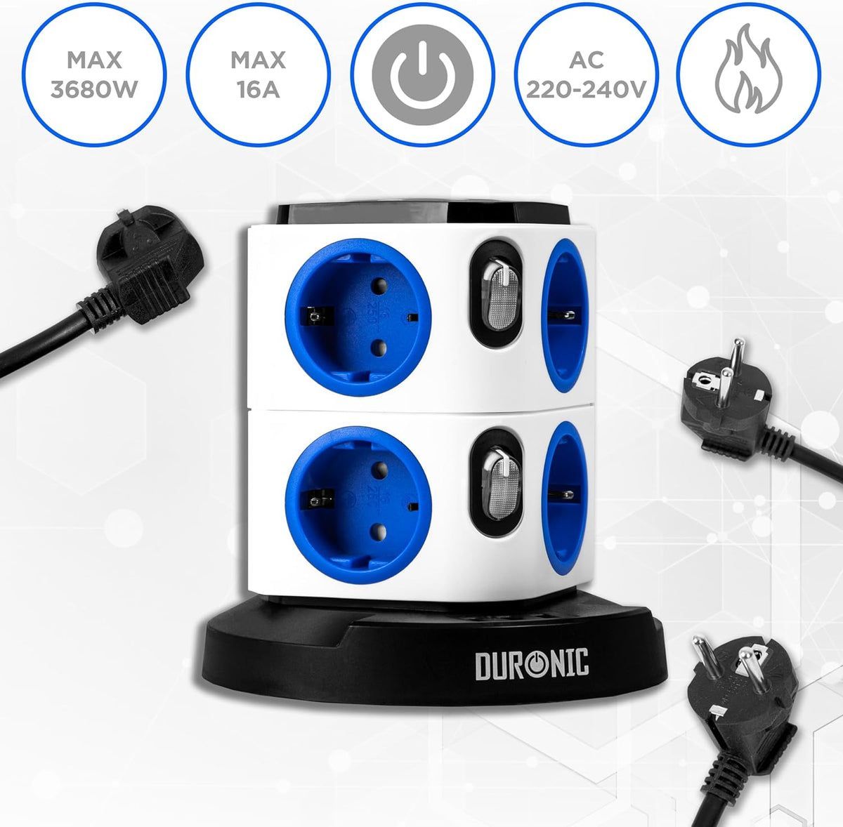 Duronic ET8L Mehrfachsteckdose 8-Fach, USB, Nachtlicht, Überspannungsschutz