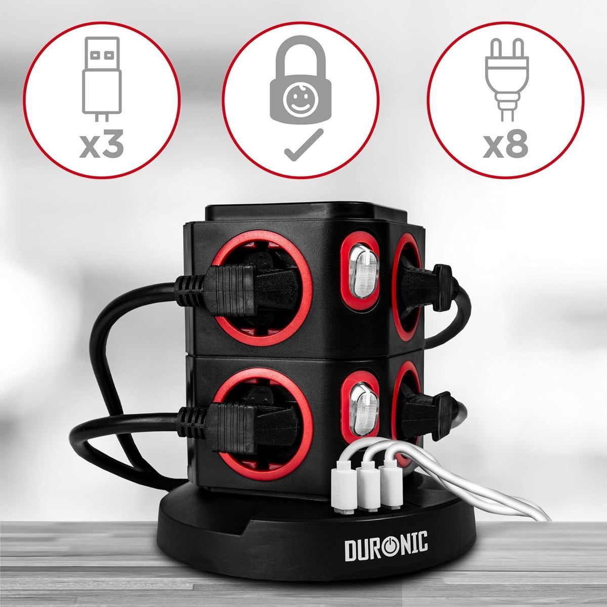 Duronic ET8W Mehrfachsteckdose 8-Fach, USB, Wireless Charging, Spannungsschutz